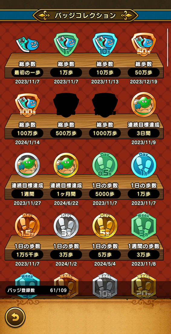 ただバッジの中には「1ヶ月100万歩」というものがありますが、