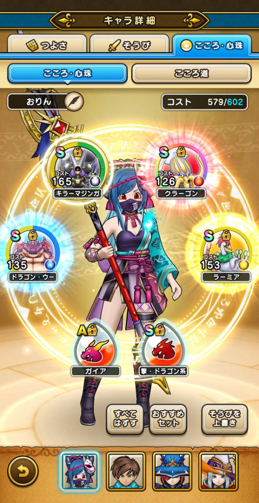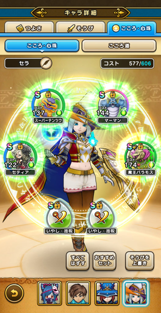 現在所有するこころから、みんドラさんの火力ランキングリストや、ゲーム内の「おすすめセット」を利用してセットしました。