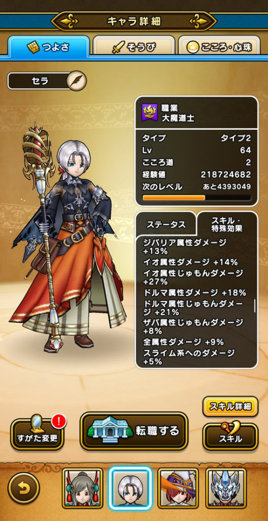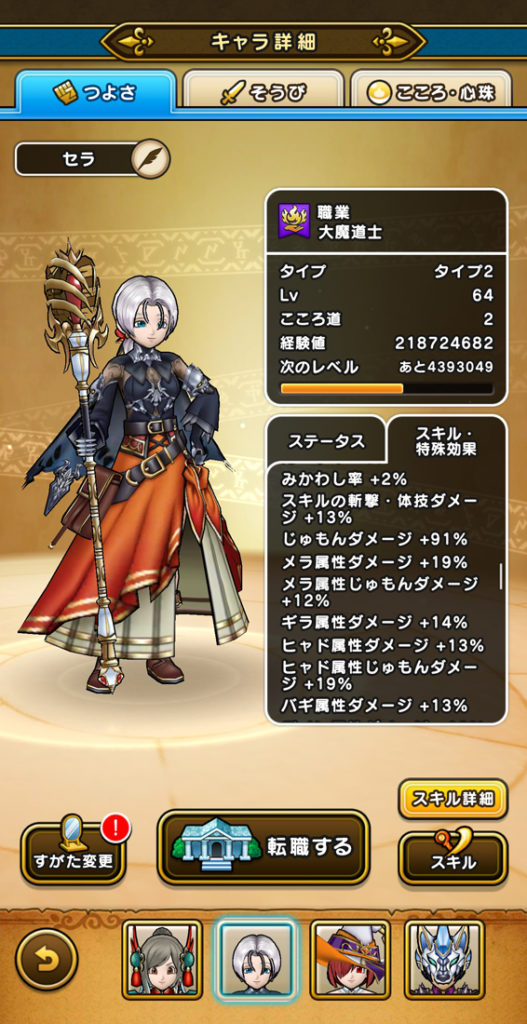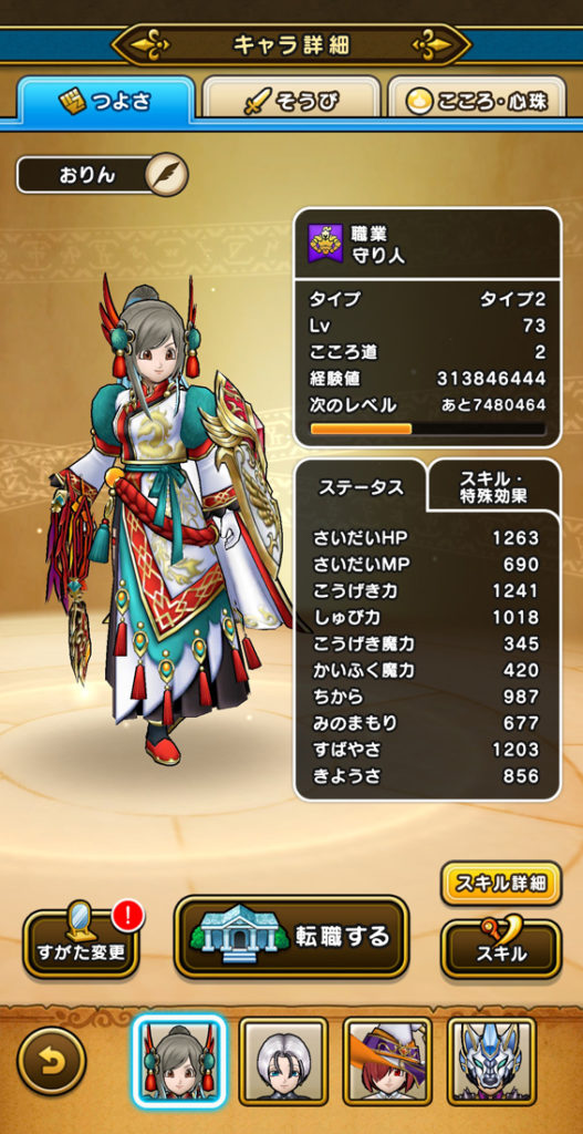 新しいスキルなこともあってか、まもりのたての付与や、グリザードの鋭牙にもあった「やる気エクステンション」効果があったりと充実しています。