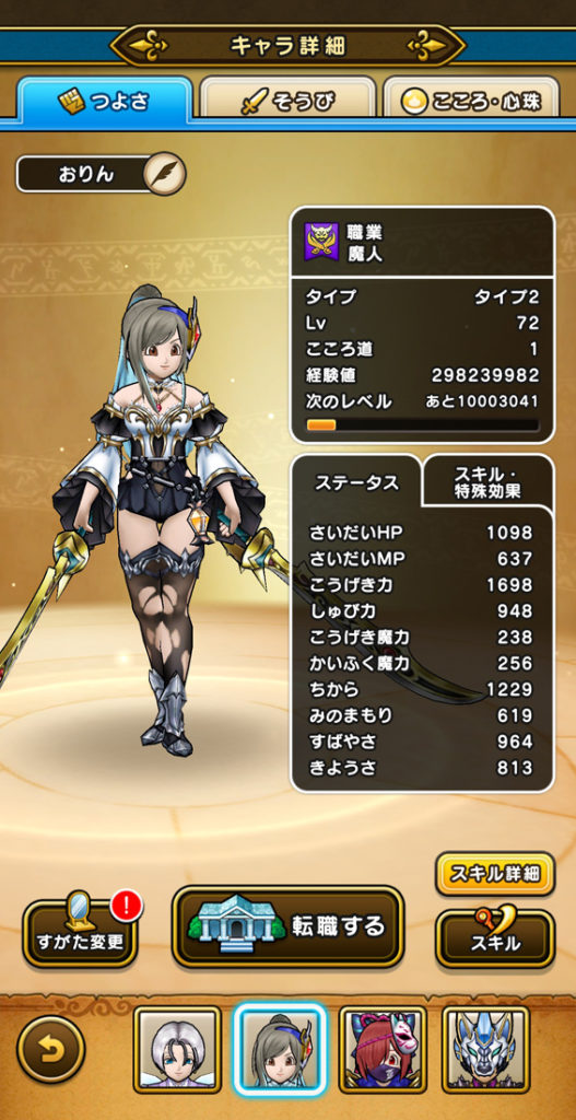 しかしこのキャラもできれば火力になれると助かりますので、両手剣持ちをして直撃確率を上げたい気もするし…。でも魔人の火力も上げたいし…。うーん。