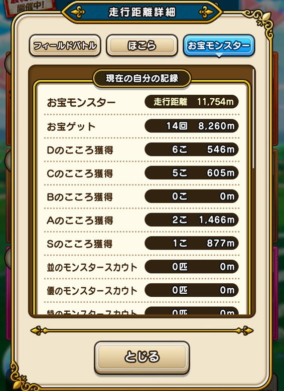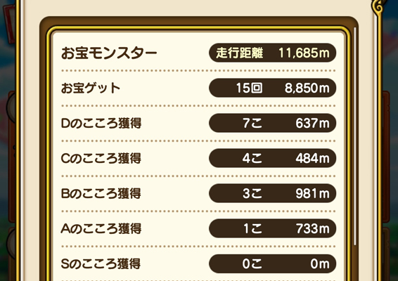 とりあえずは「ぼうけんの心珠ボックス」を集めよう。と、各コースを規定数走った結果がコレでした。
