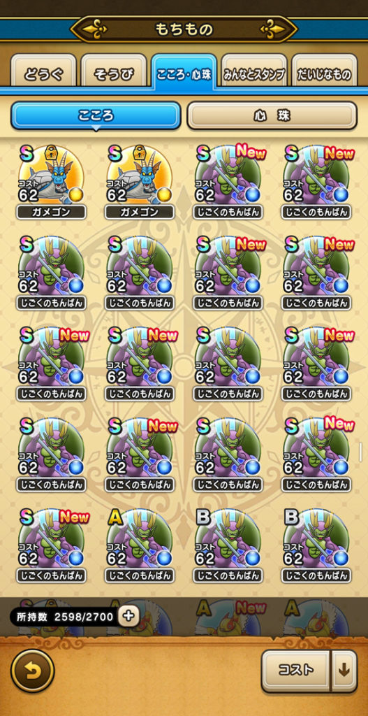 じごくのもんばんはそんなに狩ったことがなく、CやらDのこころが1個ずつあるくらいでしたが、終わってみると…